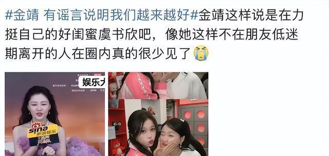 当然也有网友认为,金靖被碰瓷也难怪,主要是此前她确实和虞书欣关系太好了,当年虞书欣没有出事的时候,整天绑在一起。直言”他和虞书欣捆绑的时候,就(预料)有这么一天。”
